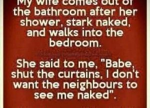 My wife stepped out of the shower, completely naked, and marched into the bedroom with confidence. “Babe,” she said, “shut the curtains! I don’t want the neighbours to see …
